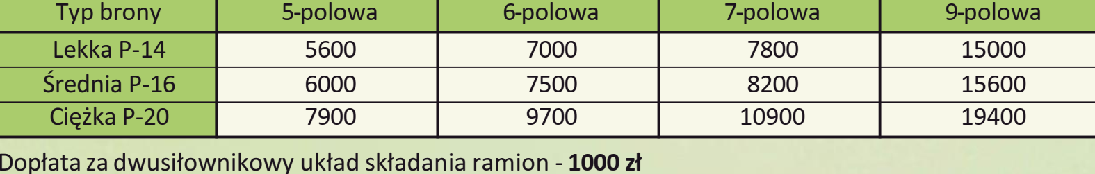 Podana cena dotyczy brony lekkiej o szer. 5,0m /5 polowa z pojedynczym siłownikiem.
