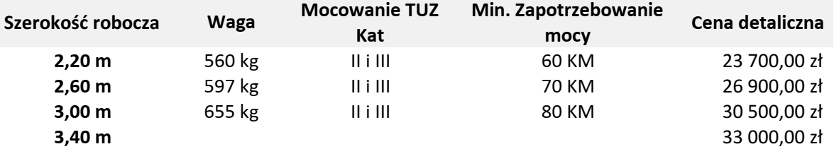 Podana cena dotyczy kosiarki 2,2m w wersji podstawowej.