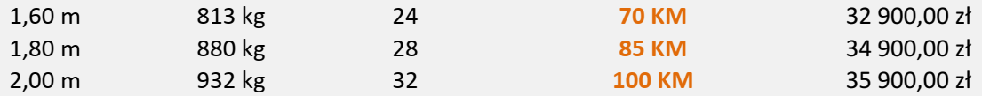| Szerokość robocza [m] | 1,60 | 1,80 | 2,00 |