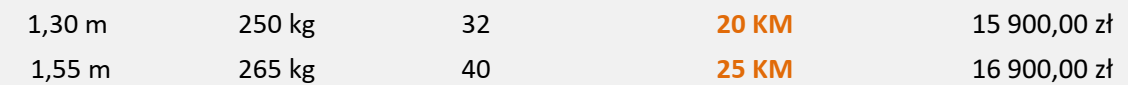 | Moc wymagana [KM] | 30 | 35 | 40 |