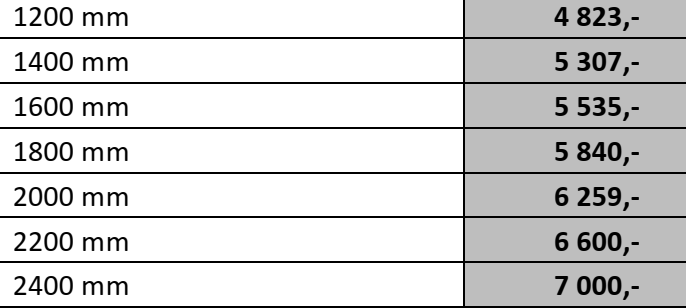 | Szerokość (mm) | Wysokość całkowita (mm) | Masa (kg) | Objętość (m3) | Udźwig (kg) | Ilość zębów (szt.) | Długość (mm) | Wysokość otwarcia (mm) | Rozstaw zębów (mm) | Długość zębów (mm) |