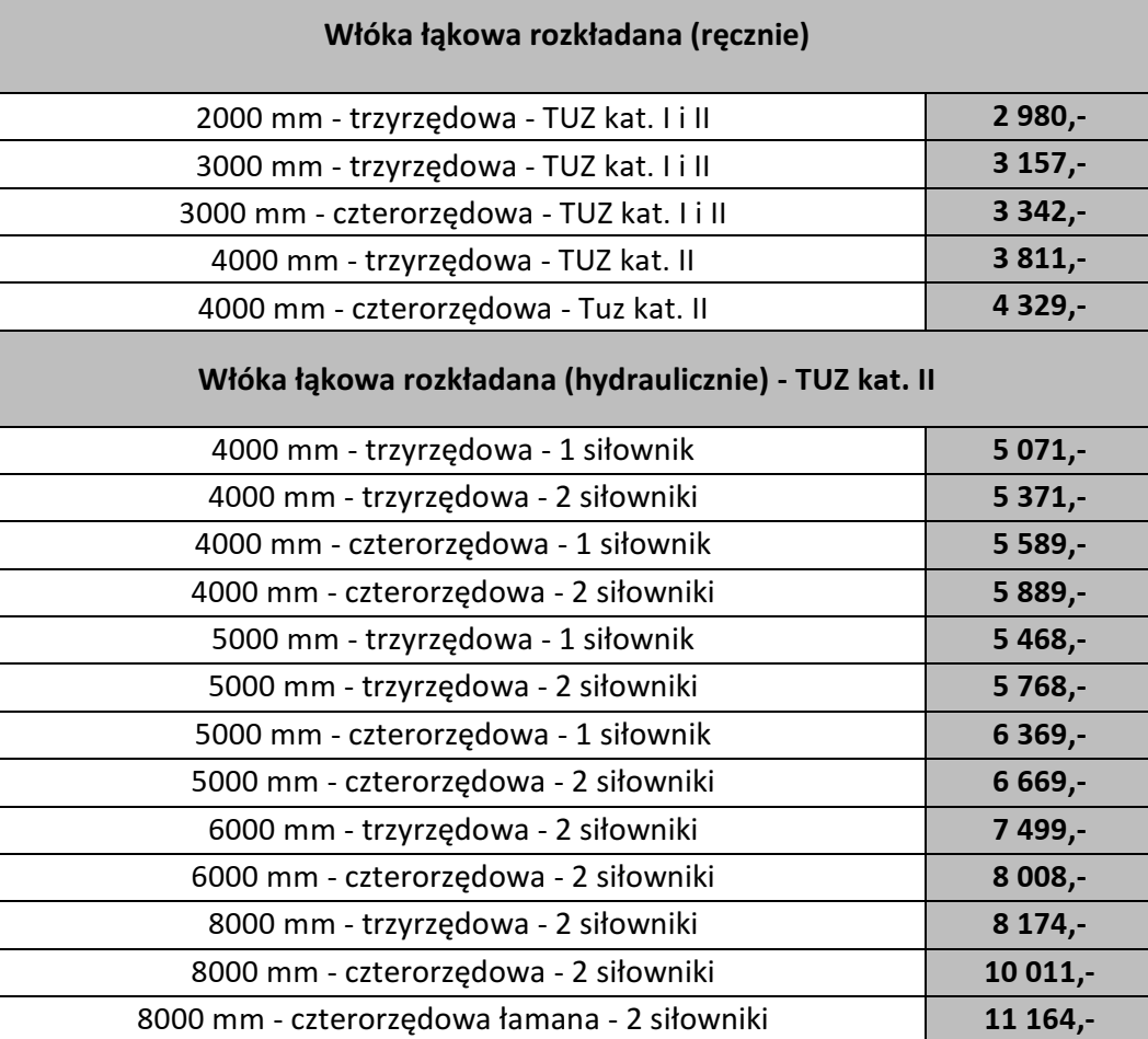 Rozkładana ręcznie lub hydraulicznie-szerokość 4, 5, 6 lub 8 metrów – przeznaczona jest do pielęgnacji łąk, pastwisk, a także do włókowania pól ornych po zimie. Włóki stosowane są również do pielęgnacji podorywek oraz upraw przedsiewnych.