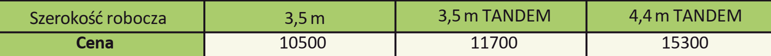 Podana cena jest ceną za zgrabiarkę 3,5m bez tandemu.